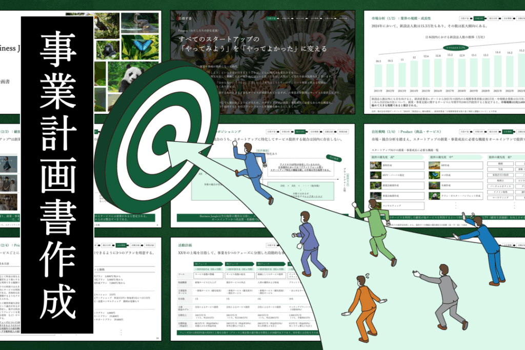 ビジコンDBでは、「Business Jungle 事業計画書作成」というビジネスコンテスト・ピッチ用の資料作成サービスを提供しております。